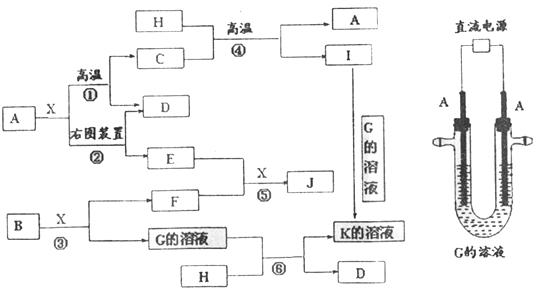 27.(15分)下图表示各物质之间的转化关系。已知:A、D、F、H均为单质,X常温下为无色液体,B为淡黄色固体,J溶于酸得到黄色溶液。