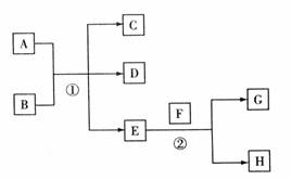 26.A-H是中学化学常见的物质,已知常温下E为无色无味的液体,F为淡黄色粉末,G为常见的无色气体(反应条件均已省略)。