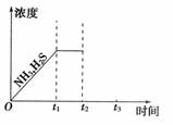 ②下图是上述反应过程中生成物浓度随时间变化的示意图。若t2时增大氨气的浓度且在t3时反应再次达到平衡,请在图上画出t2时刻后氨气、硫化氢的浓度随时间的变化曲线。