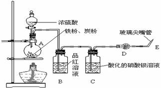 27.(18分)某同学为探究浓硫酸的性质,设计了以下实验装置图。检查好装置的气密性后,向烧瓶中加入过量的铁粉、炭粉,再滴加浓硫酸。