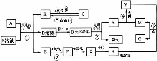 19.(12分)已知A为常见金属,X、Y为常见非金属,X、E、F、G、M常温下为气体,C为液体,B是一种盐,受热极易分解,遇冷后又化合并产生白烟,且B在农业中常用作肥料。现用A与石墨作电极,B的浓溶液作电解质,构成原电池。有关物质之间的转化关系如下图:(注意:其中有些反应的条件及部分生成物被略去)