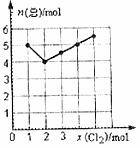 (4)Cl2与NO2在一定条件下发生化合反应,生成一种气体,实验数据如图。图中横坐标是加入Cl2的物质的量,纵坐标是反应后气体物质的量总和。已知所取Cl2、NO2的物质的量总和为6mol。则生成物的化学式是 。