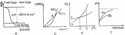 D.丁表示常温下,稀释HA、HB两种酸的衡溶液时,溶液pH随加水量的变化,则同浓度的NaA溶液的pH小于NaB溶液