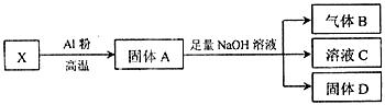 ③若已知固体X的质量为7.2g,反应中Al粉的质量是2.7g,气体B在标准状况下的体积为672mL,则固体D的质量是 g。