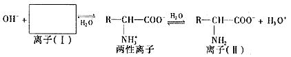 (1)氨基酸是蛋白质的基石,氮基酸分子中的氨基(-NH3)显碱性。氢基酸往往形成一种两性离子,在水溶液中存在如下平衡: