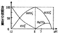 ①在同一溶液中,H2CO3、HCO-3、CO2-3(填:“能”或“不能”) 大量共存。②当pH=7时溶液中含碳元素的主要微粒为 ,此时溶液中c(HCO-3) c(Na+)(填“>、=、<”)。