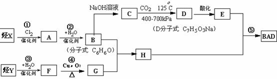 利用芳香烃X和链烃Y可以合成紫外线吸收剂BAD,已知G不能发生银镜反应,BAD结构简式为: