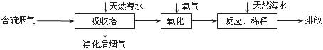 D.“排放”出来的海水中SO42-的物质的量浓度与进入吸收塔的天然海水相同