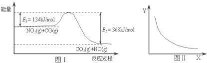 CO2(g)+NO(g)反应过程中能量示意图。一定条件下,在固定容积的密闭容器中该反应达到平衡状态。当改变其中一个条件X,Y随X的变化关系曲线如图Ⅱ。