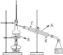 ①写出图中仪器A的名称 。冷却水从 口进入(填字母)。