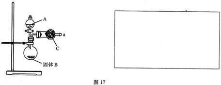 (3)同学丙利用图17装置制备氨气和氧气混合气体,C为碱石灰。试剂A为浓氨水B为 ,并利用图18装置,证明氨在催化剂存在下能被氧气氧化。