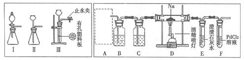 (2)观察实验装置图可知Na与CO2反应的条件是 ,检查装置的气密性完好并装入药品后,在点燃酒精喷灯前,必须进行的操作是 ,待装置 (填写字母)中出现 现象时,再点燃酒精喷灯,这步操作的目的是 。