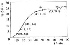 甲酸甲酯转化率在温度T1下随反应时间(t)的变化如下图: