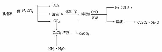 30.(16分)孔雀石主要含Cu2(OH)2CO3,还含少量Fe、Si的化合物,实验室以孔雀石为原料制备CuSO4·5H2O及CaCO3,步骤如下: