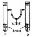 13.下图装置中,U型管内为红墨水,a、b试管内分别盛有食盐水和氯化铵溶液,各加入生铁块,放置一段时间。下列有关描述错误的是