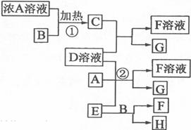有关物质存在如图所示的转化关系(部分产物已省略)。通常C为气体单质,G为紫黑色固体单质。实验室中,常用固体E在B的催化下加热制取气体单质H。