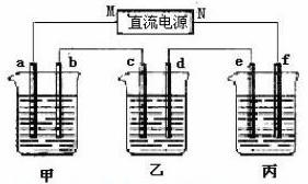 下图所示装置中,甲、乙、丙,烧杯依次分别盛放100 g 500%的NaOH溶液、足量的CuSO4溶液100 g 10.00%的K2SO4溶液,电极均为石墨电极。