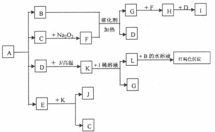 19.(16分)将一定量的晶体A,隔绝空气加热到200℃时,A全部分解为等物质的量的四种气体。这四种物质与其它物质的相互转化关系如下图所示,