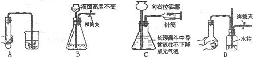 6.下列各图所示装置的气密性检查中,漏气的是 ( )