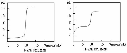II.(2)DIS数字化信息系统因为可以准确测量溶液的pH而在中和滴定的研究中应用越来越广泛深入。某学习小组利用DIS系统测定NaOH滴定同浓度HCl、CH3COOH的pH变化曲线分别如下,你能从中得到的信息有(写出2条信息):