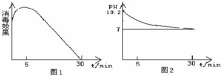 根据上图,请用化学方程式表示5分钟内消毒效果增强的原因: ;溶液中最终消毒液的有效成分转化为 。