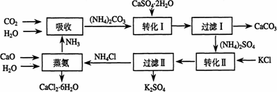将磷肥生产中形成的副产物石膏(CaSO4·2H2O)转化为硫酸钾肥料和氯化钙水合物储热材料,具有重要意义。以下是石膏转化为硫酸钾和氯化钙的工艺流程示意图。