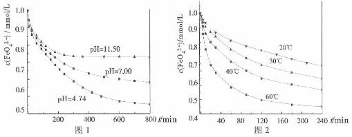 1.0m mol·L-1的试样,将试样分别置于20℃、30℃、40℃和60℃的恒温水浴中,考查不同温度对K2FeO4某种性质的影响,结果见图2。