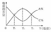 cC中,物质的含量A%和C%随温度的变化曲线如图所示,下列说法正确的是 ( )