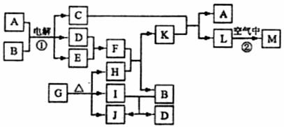 已知:常温下D、E、F、I、J为气体;C的焰色反应为黄色;M为红褐色的固体。