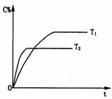 p C(g)+q D(g),达到平衡后测得B的浓度为0.5 mol/L。保持温度不变,将密闭容器的容积扩大到原来的两倍,再次达到平衡后测得B的浓度为0.2 mol/L。当其他条件不变时,C在反应混合物中的体积分数(C%)与温度(T)、时间(t)的关系如图所示。下列叙述正确的是 ( )