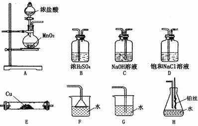 (1)实验室预制取纯净、干燥的Cl2,并验证其和铜的反应,所选装置的顺序依次为(从左向右)__________;需要加热的仪器有_____________,硬质玻璃管E内的现象为______________。