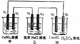D.当装置电路中有6.02×1021个电子通过时,乙中溶液的pH是13
