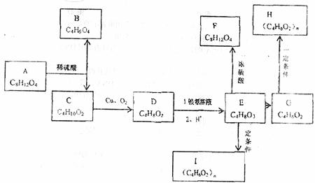 有机物A、B、C、D、E、F、G、H、I之间有如下图所示的关系。B的主链上有3个碳原子,G可使溴水褪色。