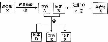经实验测定:固体D的质量为32g,溶液E中只含有一种金属离子,且酸性较强,气体F在标准状况下体积为5.6L。