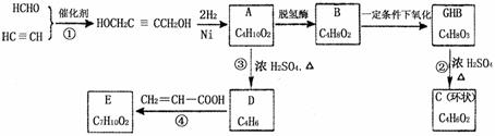 物质A在体内脱氢酶的作用下会氧化为有害物质GHB。下图是关于物质A的一种制备方法及由A引发的一系列化学反应: