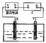 12.下图中,Z为浸透饱和食盐水和酚酞试液的滤纸,水槽中盛有足量CuSO4溶液,X、Y为石墨电极。接通电路后,发现Z上的d点显红色。下列说法正确的是 ( )