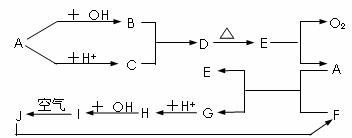 27.(12分)下图A-J分别代表有关反应中的一种物质,它们均为中学化学中的常见物质,其中A和G为固体单质,已知A-E和F-J中分别含有同一种元素。反应E→A+O2的反应条件未标出。