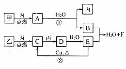 23.(9分)甲、乙、丙为常见单质,组成乙、丙的元素是周期表中同一主族的短周期元素, A、B、C、D、E、F均为常见化合物,A、B、F的焰色反应为黄色,各物质转化关系如下图所示:
