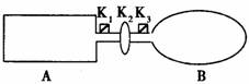 II、如图A是由导热材料制成的密闭容器,B是一耐化学腐蚀且易于传热的气球。关闭K2,将等量且少量的NO2通过K1、K3分别充入A、B中,反应起始时,A、B的体积相同。