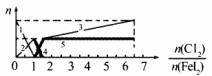 、Fe2+、Fe3+等粒子的物质的量随n(Cl2):n(FeI2)的变化可用下图简单表示,下列有关说法中正确的是