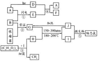 (2)从④的变化中,可知物质E在自然环境中所起的作用是 ;