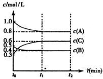 25.(6分)向一体积为2L的恒容密闭容器中加入2molA、0.6molC和一定量的B三种气体。一定条件下发生反应,各物质浓度随时间变化如下图所示。