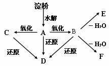 23.(8分)如图所示:淀粉水解可产生某有机化合物A, A在不同的氧化剂作用下,可以生成B(C6H12O7)或C(C6H10O8),B和C都不能发生银镜反应。A、B、C都可以被强还原剂还原成为D(C6H14O6)。B脱水可得到五元环的酯类化合物E或六元环的酯类化合物F。已知,相关物质被氧化的难易次序是:RCHO最易, R-CH2OH次之,