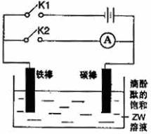 第二步:将开关K1断开,向水槽中滴入XW的溶液至红色恰好褪去,再接通开关K2,发现电流表指针偏转。写出碳棒上的电极反应式 。