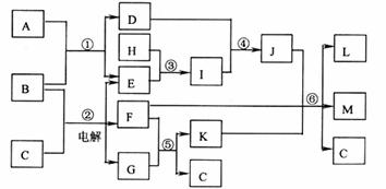 17.(10分)下列框图为短周期元素组成的物质之间的相互转化关系(有关反应的条件及生成的H2O已略去),已知反应①②③④均为化工生产中的重要反应。E、G、H为常见的气体单质,A、D、I为常见气体,D是一种主要温室气体。工业上常用L的热溶液洗去金属表面的油污,M由两种元素组成,是火箭发射中常用的一种液体燃料。J是常见的氮肥,相对分子质量为60。