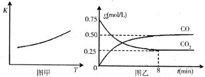 (2)一定温度下,向某密闭容器中加入足量铁粉并充入一定量的CO2气体,反应过程中CO2气体和CO气体的浓度与时间的关系如图乙所示。8min内,CO的平均反应速率