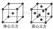 (2)金属铁的晶体在不同温度下有两种堆积方式,晶胞分别如下图所示。则体心立方晶胞和面心立方晶胞中实际含有的铁原子个数之比为 ,铁原子的配位数(与一个原子等距离且距离最近的原子数)之比为 。