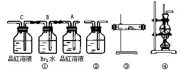 (2)用编号为①-④的实验装置设计一个实验,以验证上述反应混合气体中含CO2、SO2和水蒸气。所用装置的连接顺序(按产物气流从左到右的流向):______→______→______→______(填序号)