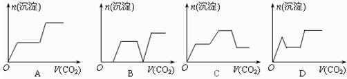 11、将足量的CO2不断通入KOH、Ca(OH)2、KAlO2的混合溶液中,生成沉淀与通入CO2的量的关系可表示为( )