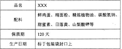 2、(8分)有一个食品广告称:“我公司生产的新型糕点不含糖,是糖尿病人的最佳选择。”下表是其食品包装袋上的说明,从表中的配料中分别选出一种物质填在相应的横线上。